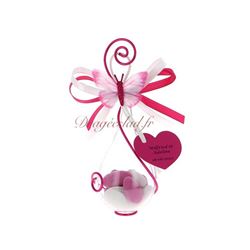 Sublimez votre décoration de table en choisissant ce ballotin dragées mariage fuchsia très classe.