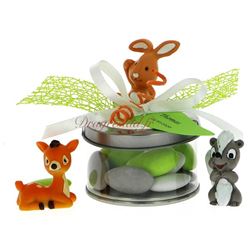 Découvrez nos figurines Amis de la forêt. De jolies figurines aux finitions impeccables et aux couleurs lumineuses idéales pour un baptême ou un anniversaire. Créez de magnifiques boites à dragées ou laissez vous séduire par nos contenants garnis de  dragées créées dans notre atelier sur le thème baptême Animaux de la forêt.  Le faon Bambi accompagné de ses amis Panpan le lapin et Fleur le putois se feront une joie de partager avec vous ce merveilleux moment qu'est le baptême de votre enfant.